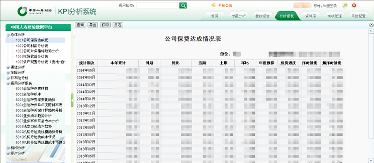 提供總體分析,渠道分析,車險(xiǎn)分析,非車險(xiǎn)分析,通用分析,機(jī)構(gòu)分析,客戶分析等數(shù)據(jù)分析服務(wù)。對(duì)保費(fèi)、利潤(rùn)、成本、預(yù)算、收益等指標(biāo)進(jìn)行匯總統(tǒng)計(jì)。通過BI數(shù)據(jù)服務(wù)平臺(tái)完成以上統(tǒng)計(jì)分析報(bào)表的設(shè)計(jì)與制作,并將這些報(bào)表集成到中國人壽財(cái)險(xiǎn)的業(yè)務(wù)平臺(tái),在中國人壽財(cái)險(xiǎn)業(yè)務(wù)平臺(tái)統(tǒng)一展現(xiàn)。