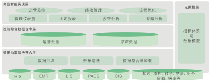 1)基于醫(yī)院戰(zhàn)略發(fā)展的需要,醫(yī)院信息化經(jīng)過這些年的建設(shè)信息系統(tǒng)面臨轉(zhuǎn)型,即從面向應(yīng)用到面向分析的轉(zhuǎn)型,同時能夠提升信息系統(tǒng)價(jià)值,使信息化向數(shù)據(jù)分析、決策支持領(lǐng)域邁進(jìn)。