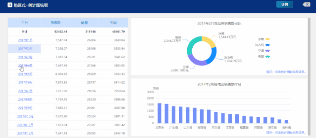 億信ABI能做的圖表分析是Excel無法實(shí)現(xiàn)的高級功能,比如:圖表鉆取。當(dāng)你點(diǎn)擊圖表中的某一個(gè)數(shù)據(jù),讓圖標(biāo)跳轉(zhuǎn)展示點(diǎn)擊數(shù)據(jù)的更詳細(xì)的數(shù)據(jù)。逐層下鉆的功能,將匯總的數(shù)據(jù)逐次展示到細(xì)節(jié)數(shù)據(jù)進(jìn)行觀察,清晰明了。