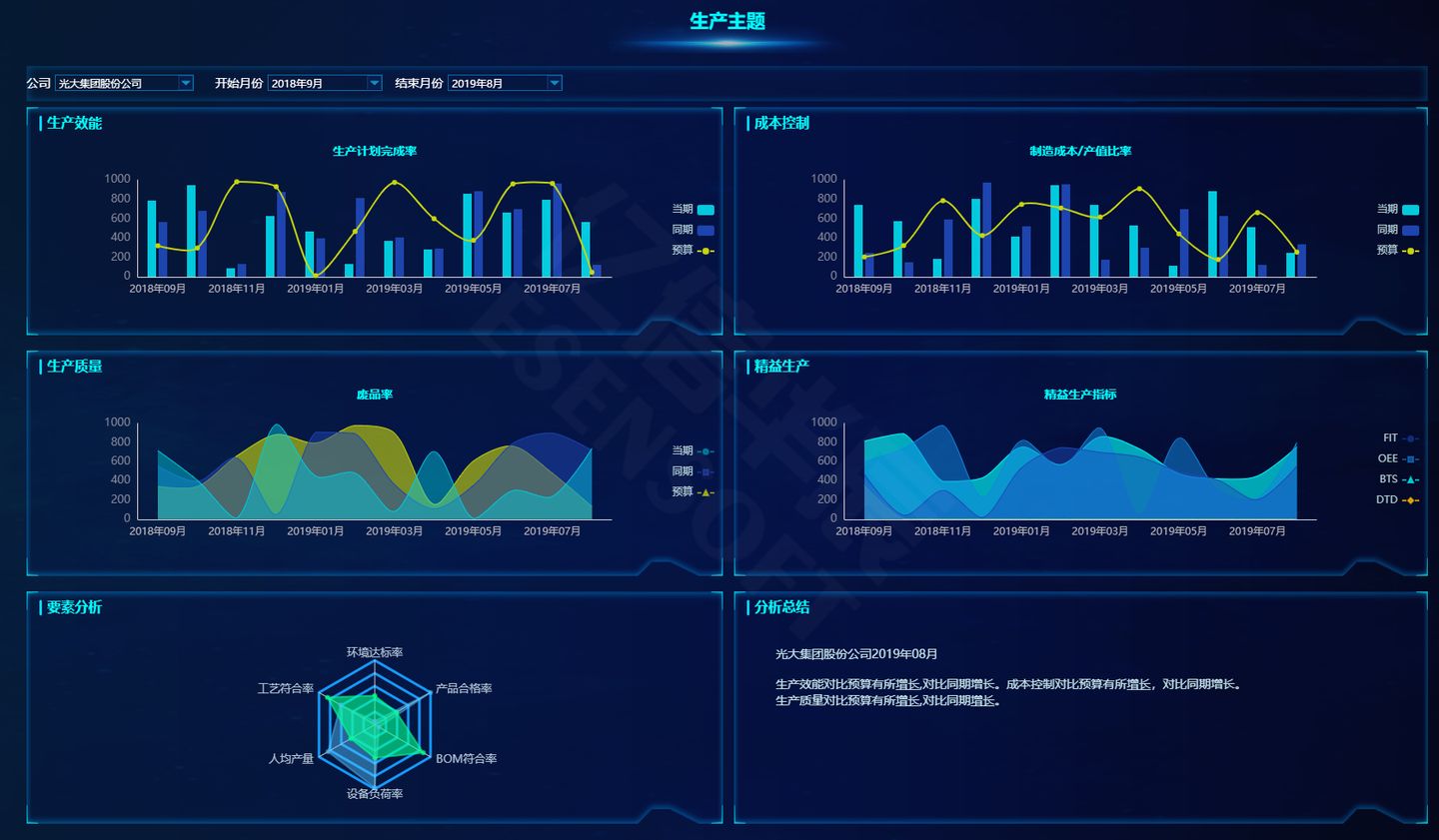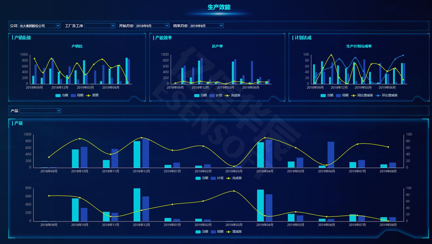 下圖是用億信ABI搭建的生產數據分析平臺,都是用于實際生產的可視化報表。