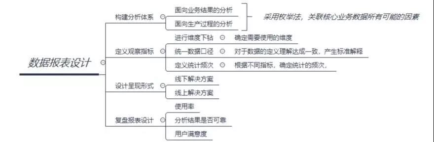 維度細化的過程中,可能會逐漸拆分為一級指標、二級指標……n級指標,但并非拆分中的每一個維度都要作為觀察指標。是否作為報表使用要結合公司業務特點并且和業務部門多次溝通協調達成共識。
