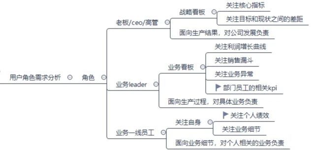 不同的角色的默認看板頁面是不一樣的,要設計多份看板頁面,至于不同頁面是否可以互通,這就要取決于公司業務數據是否屬于商業機密,牽扯到RBAC權限模型的設計,這里就不多贅述了。
