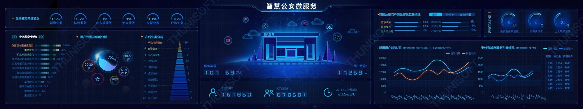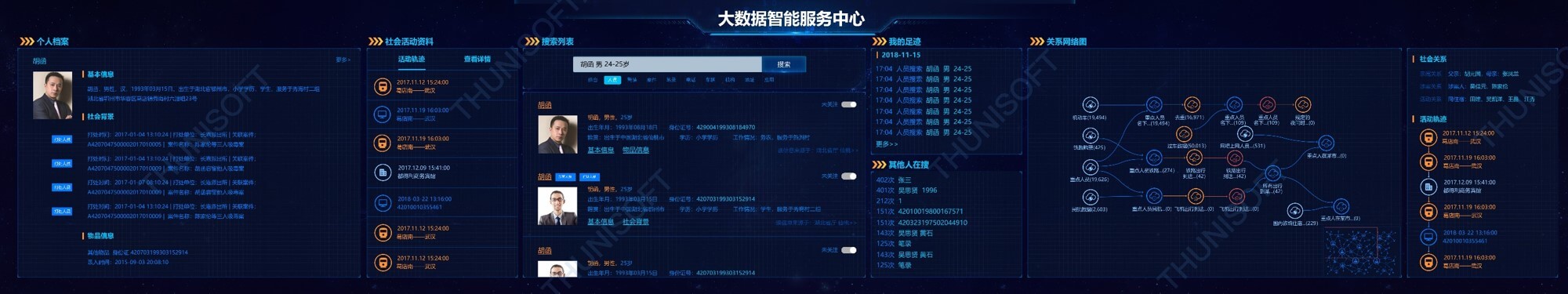 智慧公安實(shí)戰(zhàn)應(yīng)用包括了智慧搜索、智慧建模、智慧服務(wù)、智慧監(jiān)督、智慧標(biāo)簽、智慧小區(qū)、智慧管控以及智慧監(jiān)測(cè),實(shí)現(xiàn)個(gè)人檔案的查詢,同時(shí)關(guān)聯(lián)社會(huì)關(guān)系和活動(dòng)軌跡并繪制出關(guān)系網(wǎng)絡(luò)圖,通過(guò)建模顯示各模型使用情況和資源訪問(wèn)量、訪問(wèn)趨勢(shì),進(jìn)行在線業(yè)務(wù)分析,各類警務(wù)案件指標(biāo)分析,根據(jù)標(biāo)簽標(biāo)準(zhǔn)生成人員畫(huà)像,通過(guò)重點(diǎn)人員異常軌跡進(jìn)行警情監(jiān)測(cè),根據(jù)熱點(diǎn)追蹤進(jìn)行傳播路徑分析,實(shí)現(xiàn)公安智慧化管理。